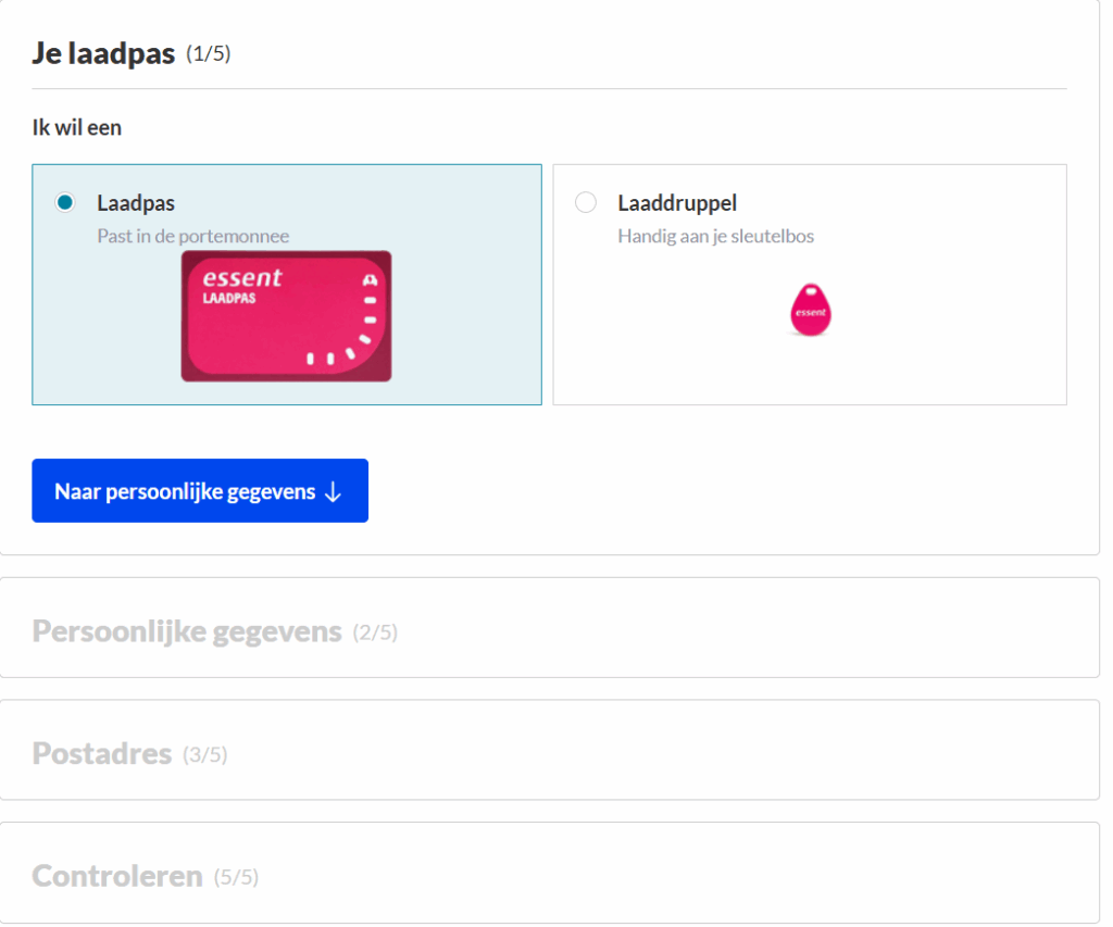 Een Essent laadpas aanvragen is vrij eenvoudig en verloopt volledig online. In grote lijnen doorloop je de volgende stappen: