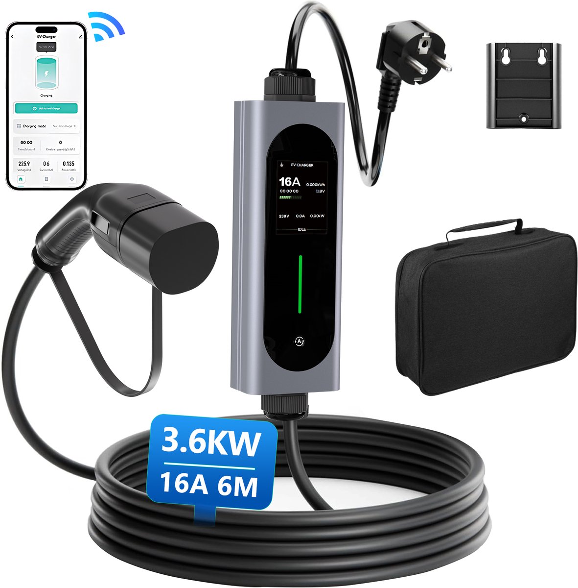 Krachtige Draagbare 3.6 kW WiFi EV Laadkabel – Type 2, 6M Kabel